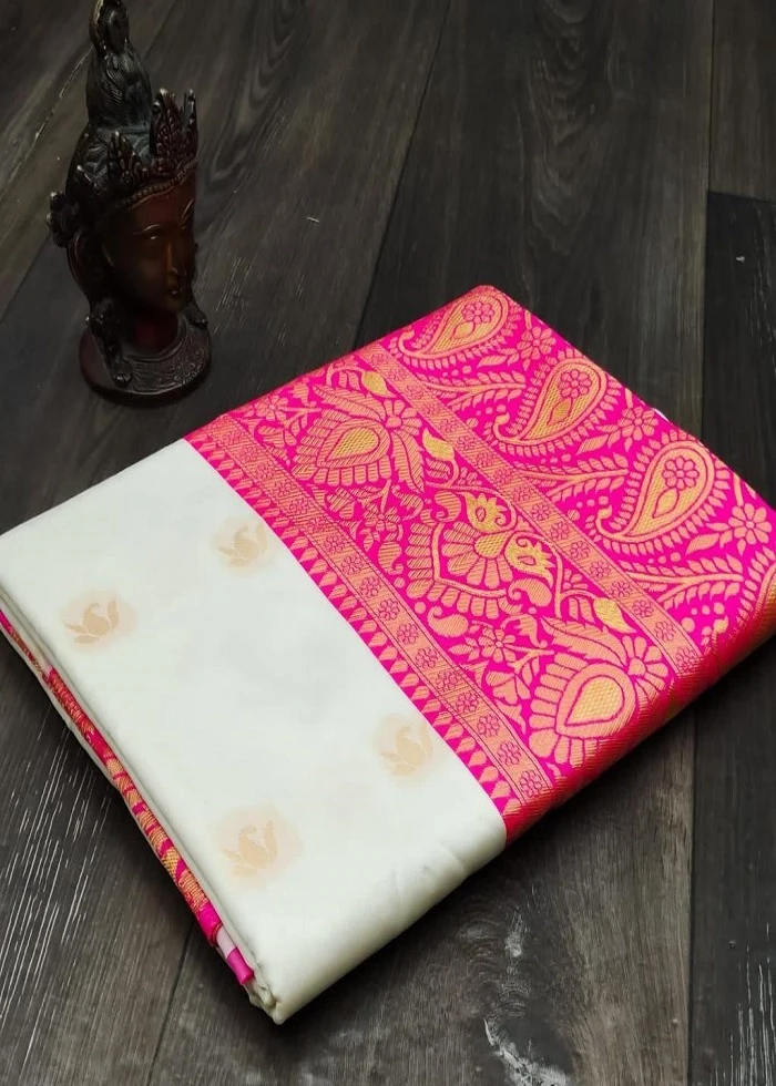 SAREE SPECIFICATIONS: ►Fabric: Soft Banarasi Silk ►Colour: Cream ►Work Type: Jacquard