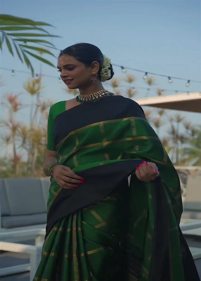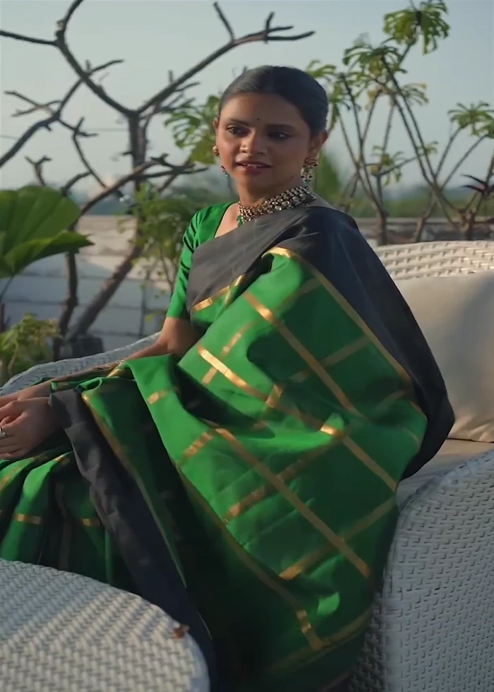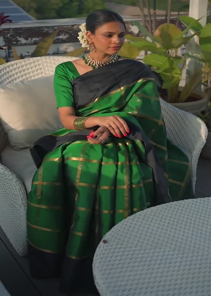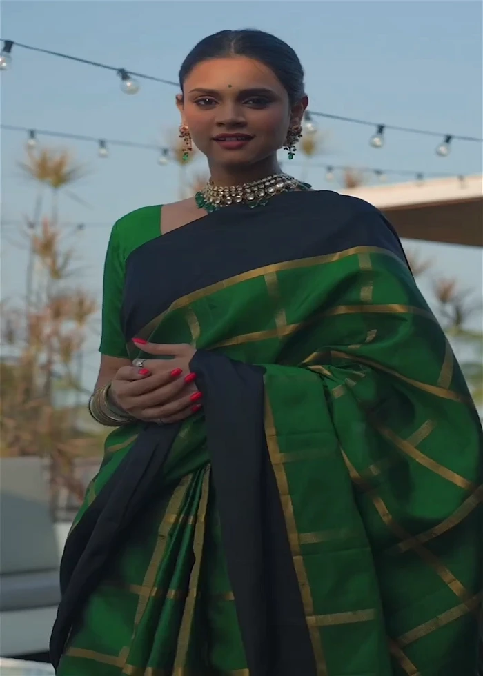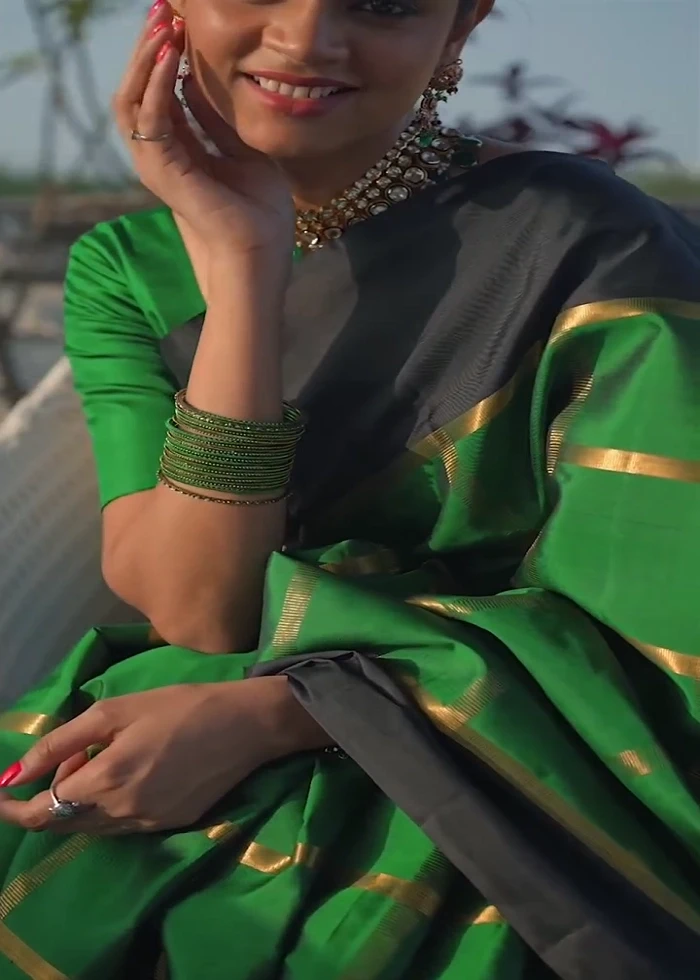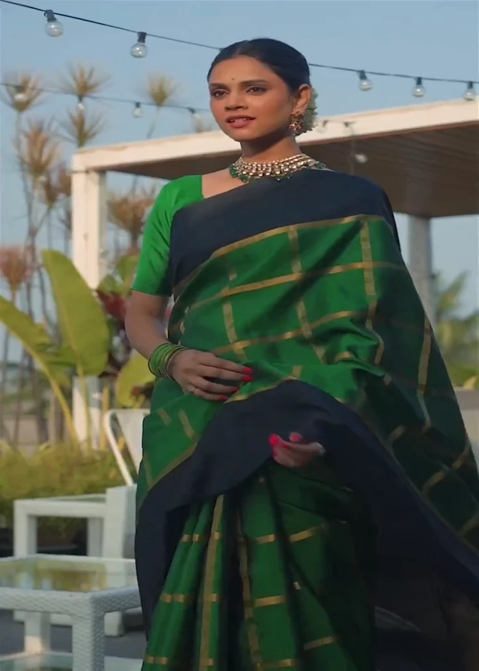 SAREE SPECIFICATIONS: ►Fabric: Soft Banarasi Silk ►Colour: Black and Green ►Work Type: Jacquard