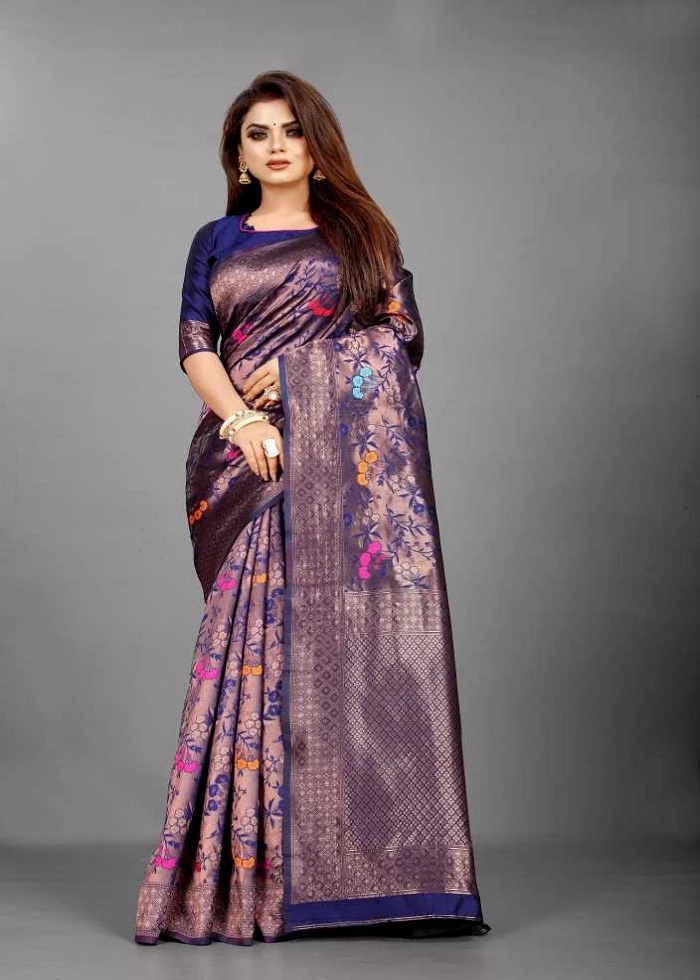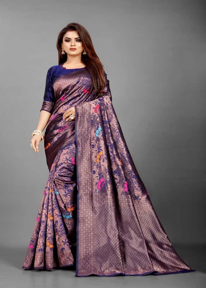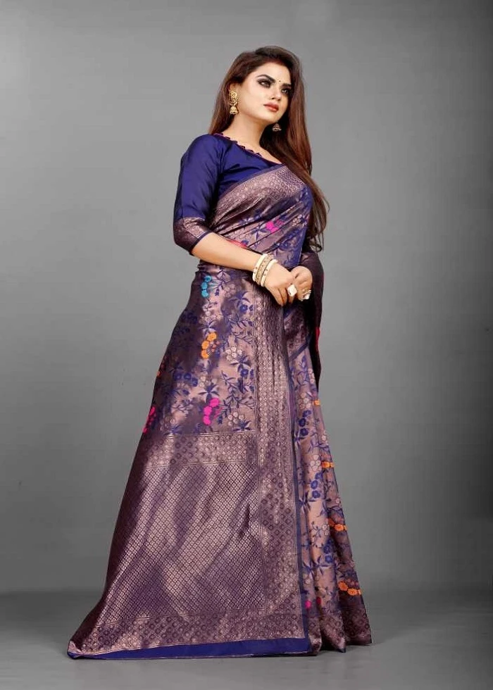 SAREE SPECIFICATIONS: ►Fabric: Soft Banarasi Silk ►Colour: blue-and-gold ►Work Type: Jacquard