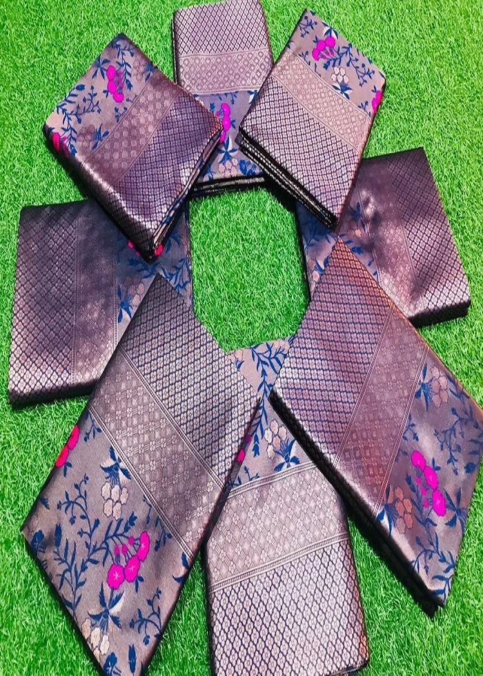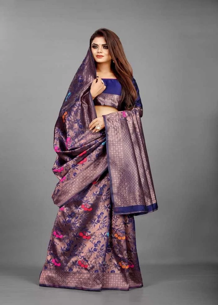 BLOUSE SPECIFICATION: ►Fabric: Soft Banarasi Silk ►Colour: blue-and-gold ►Work Type: Jacquard ►Stitching Type: Unstitched