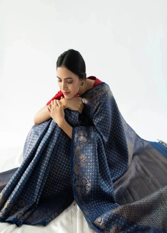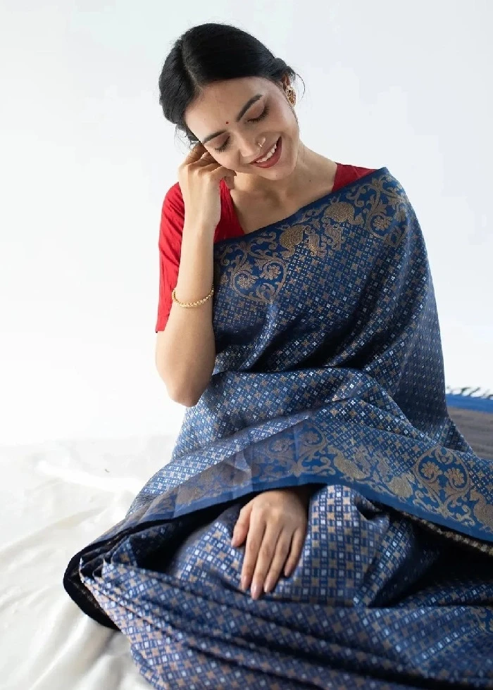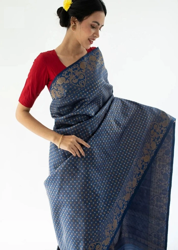 SAREE SPECIFICATIONS: ►Fabric: Soft Banarasi Silk ►Colour: Bule ►Work Type: Jacquard