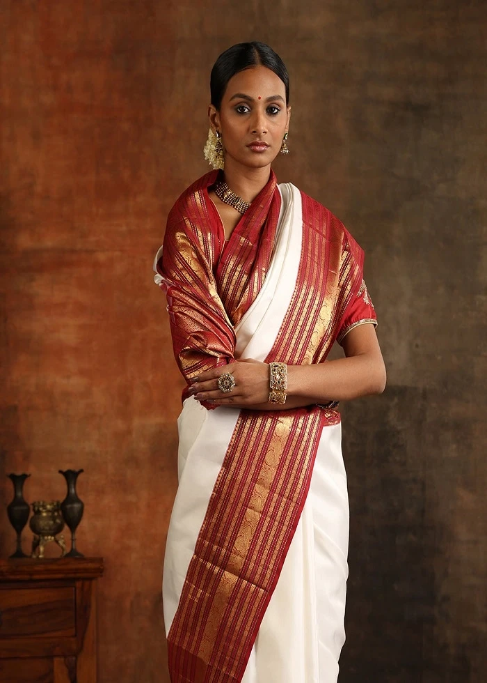 SAREE SPECIFICATIONS: ►Fabric: Soft Banarasi Silk ►Colour: Cream and Red ►Work Type: Jacquard