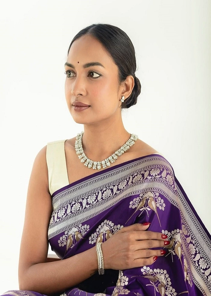 Purple Soft Cotton Silk Saree With Weaving Work and Blouse South Indian Saree