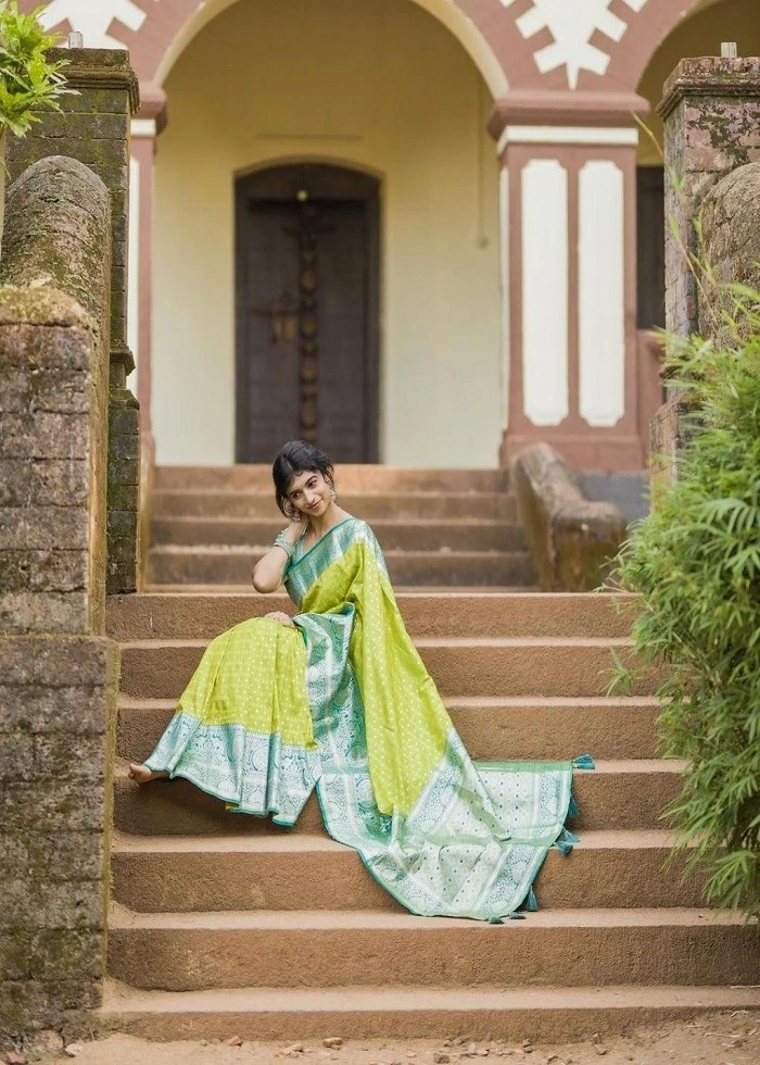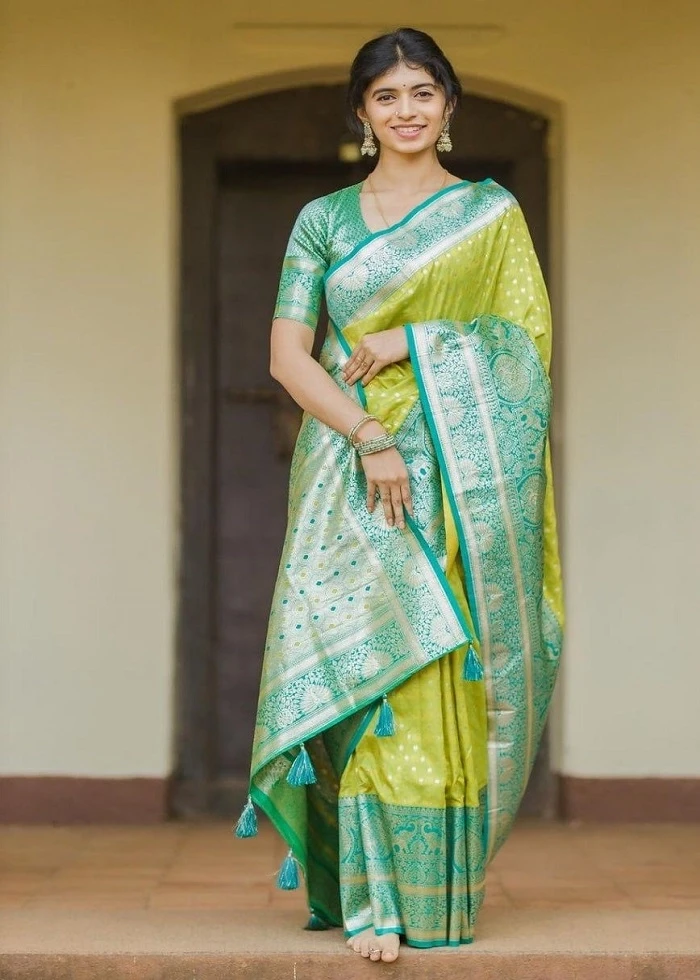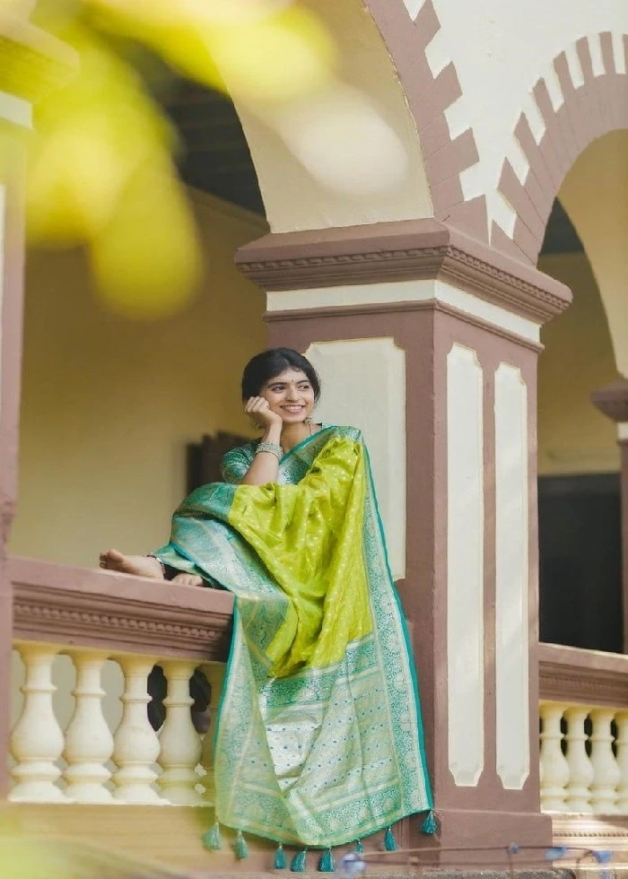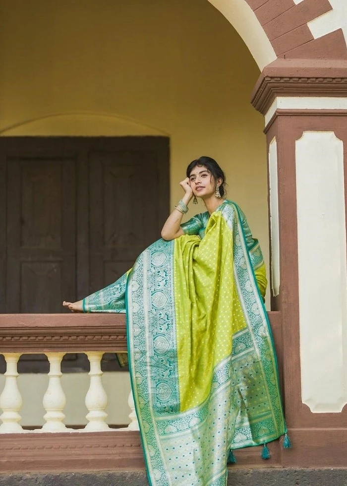 SAREE SPECIFICATIONS: ►Fabric: Soft Banarasi Silk ►Colour: Parrot ►Work Type: Jacquard