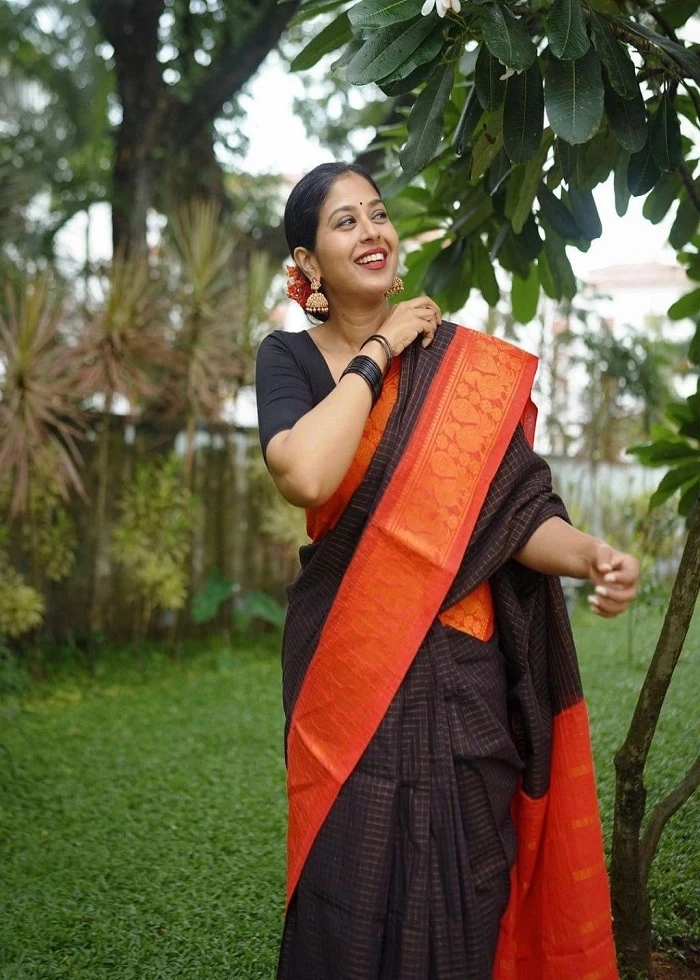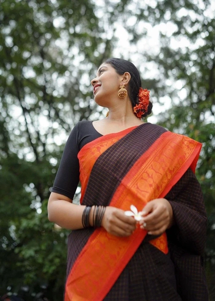 SAREE SPECIFICATIONS: ►Fabric: Soft Banarasi Silk ►Colour: Black&Orange ►Work Type: Jacquard