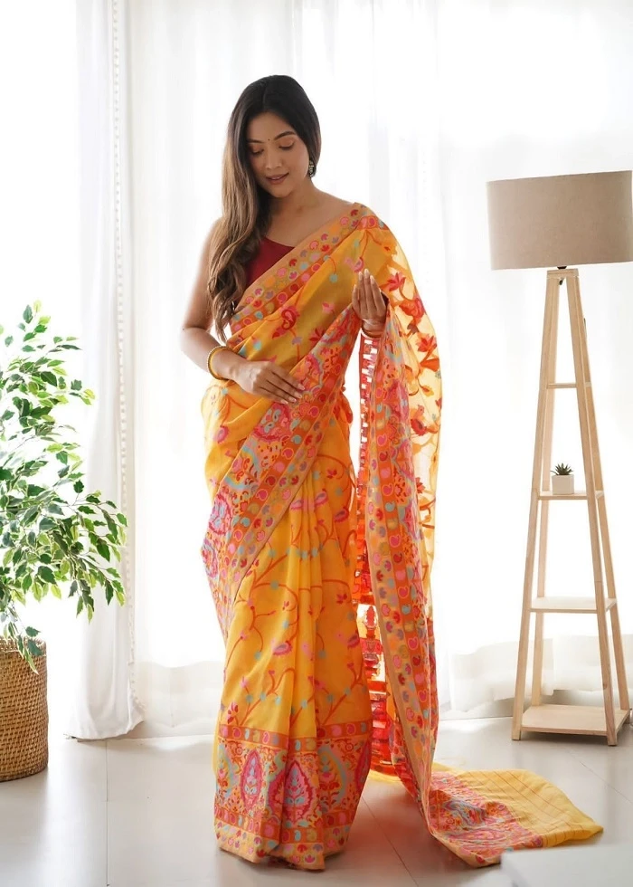 GOLDEN ZARI WEAVING JACQUARD SAREE...